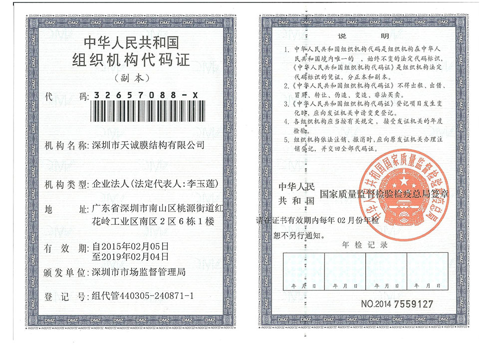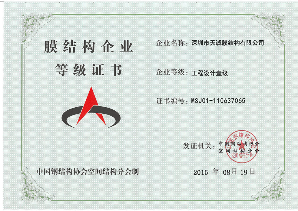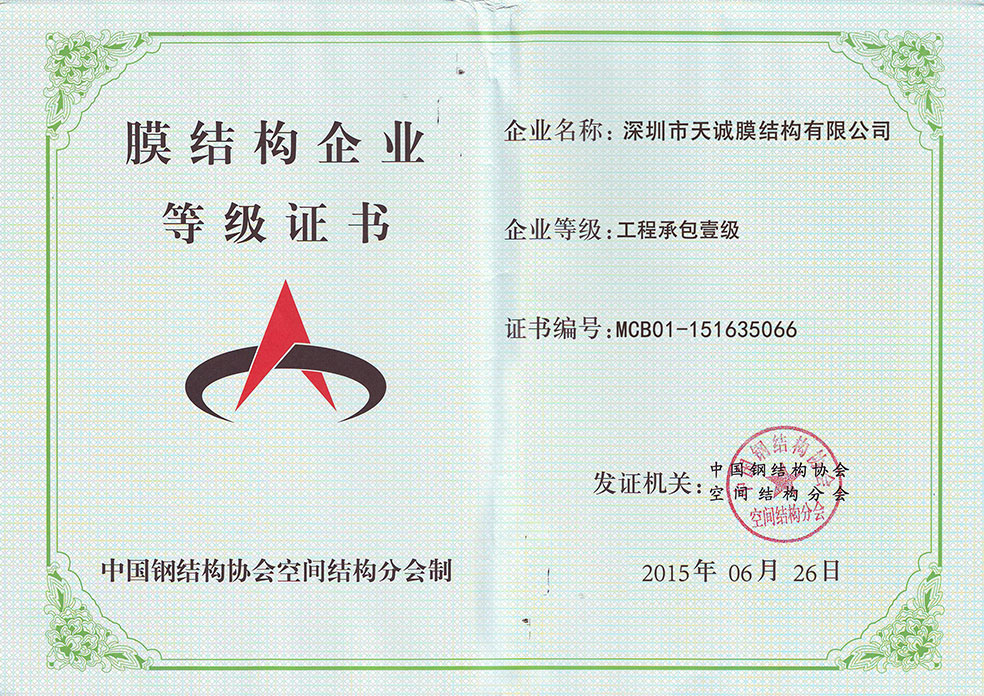 膜结构企业等级证书