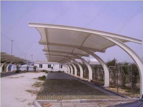 膜结构车棚防污自洁性是所有建筑膜材中最好的,但柔韧性差,施工较困难,成本也十分惊人。膜结构车棚其加工方法是把玻纤织物多次快速放入特氟隆熔体中,使织物两面皆有均匀的特氟隆涂层,使永久性的膜结构车棚正式诞生。