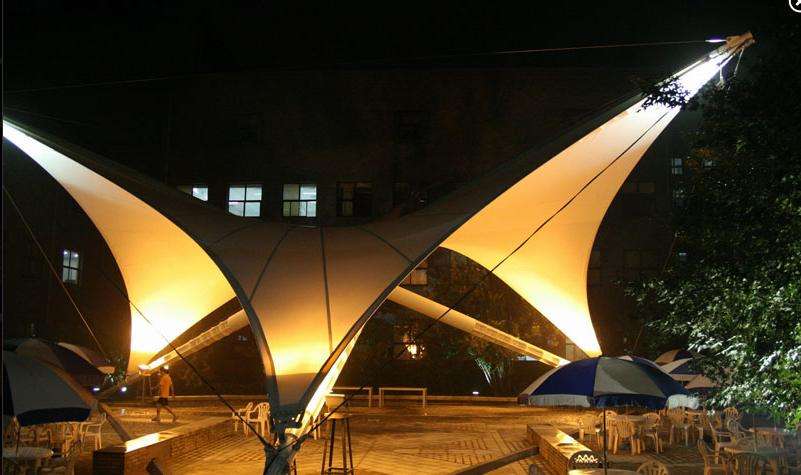因此近来年,这类修建不断增加选用膜结构。此外,比如停车棚、收费站、商业街等都逐步选用膜结构修建。修建膜资料的运用寿命为 25 年以上,在运用期间,在雪或风荷载效果下均能保持资料的力学形状安稳不变。而且,膜结构的表层润滑,具有弹性,大气中的尘埃、化学物质的微粒极难附着与浸透,经雨水的冲刷修建膜可恢复其原有的清洗面层与透光性。