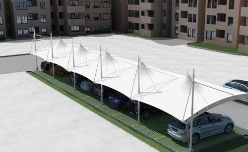 膜结构车棚是打破传统的修建构造,其外型十分美丽、典雅、天然等,在方式上是能够充分的发挥其修建师的想象力,并且还构建了各种形状、颜色丰富,而膜结构车棚是作为21世纪现代高科技绿色修建。